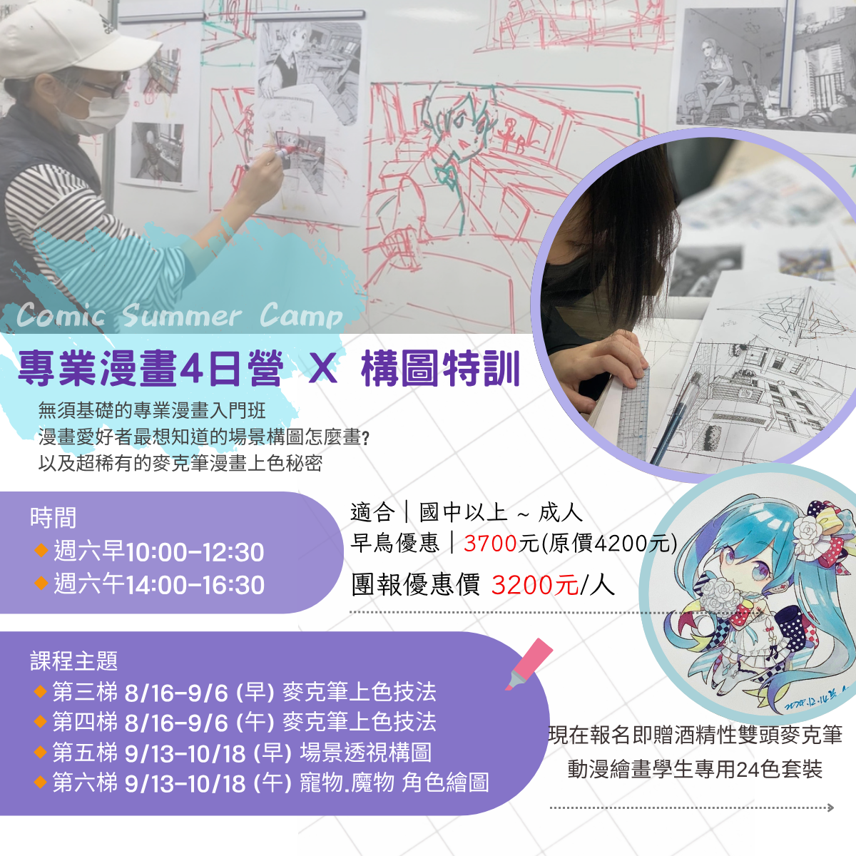 無論是漫畫初學者,還是想強化角色設定的創作者,這個營隊將讓你在短時間內掌握關鍵技巧,有效提升人物繪圖與角色創作的實力!