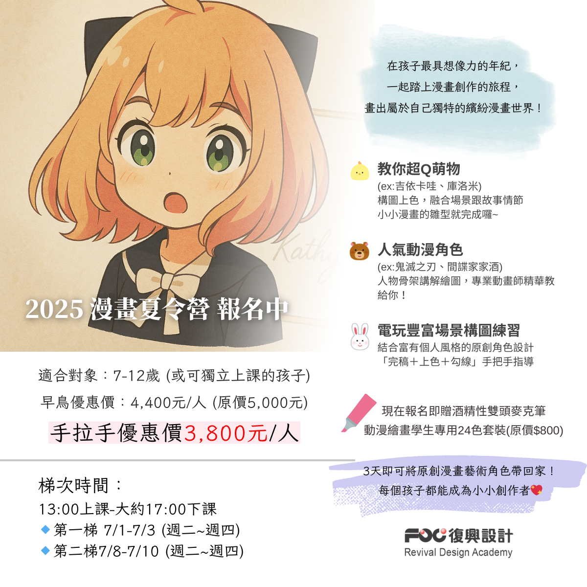 無論是漫畫初學者,還是想強化角色設定的創作者,這個營隊將讓你在短時間內掌握關鍵技巧,有效提升人物繪圖與角色創作的實力!