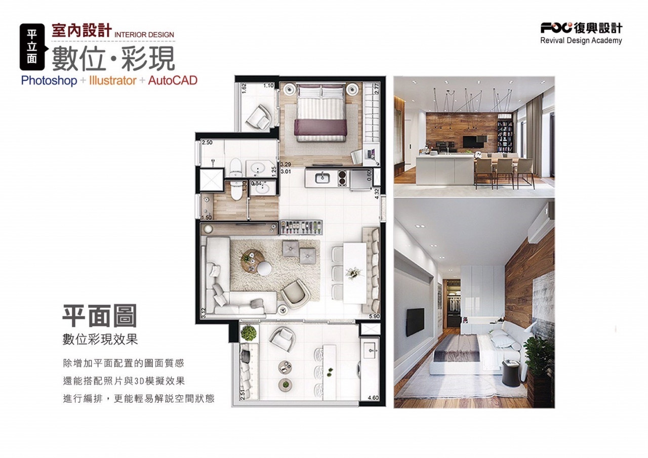 課程內容涵蓋從圖面整理、色彩構成、材質應用、氛圍光影,到構圖與版面設計的整體視覺規劃,不僅幫助你建立清晰、專業的彩現流程,更強化你的設計邏輯與視覺說服力。透過實作練習與案例講解,逐步讓你掌握將抽象概念具象化的能力,並能自信地在客戶或主管面前呈現你的空間想像。